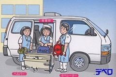 1.ご自宅に到着 訪問入浴車両で看護士・ヘルパー・オペレーターの3名で訪問します。 |