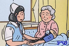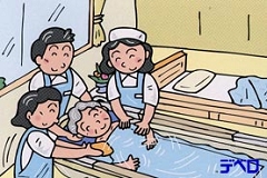 2.入浴前の健康状態確認 看護師が入浴前に血圧・体温・脈拍・呼吸・血中酸素濃度などを測定し、状態観察を行い、入浴に際しての安全確認の判断をします。 床ずれ・痰の吸引等も主治医の指示に基づき処置をさせて頂きます。 |