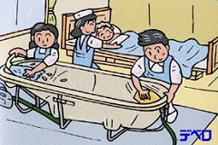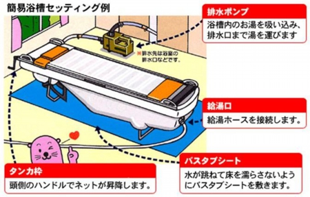 - ベッドサイドに浴槽を持込み、寝たままで入浴していただけます。