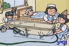- ベッドサイドに浴槽を持込み、寝たままで入浴していただけます。