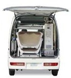 1.ご自宅に到着 訪問入浴車両で看護士・ヘルパー・オペレーターの3名で訪問します。 |